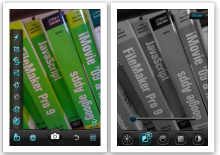 The editing features are equally awesome, including crop and rotation tools, exposure adjustment, various photo filers, built-in geo-tagging, and several options for sharing your photos online. It also allows you to manage your photos and video captures within its browser, where they can also be moved to the camera roll on your iPhone.